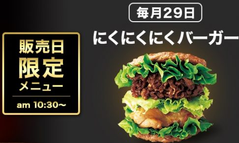モスバーガーのにくにくにくバーガーは2017年に期間限定で発売。あまりもの人気でその後はモスの肉の日、毎月29日限定で発売されています。 お肉たっぷりでおいしいと大評判。 しかしながら、おいしいものはカロリーや糖質が高い…